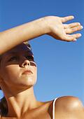 Gesture to block the sun.