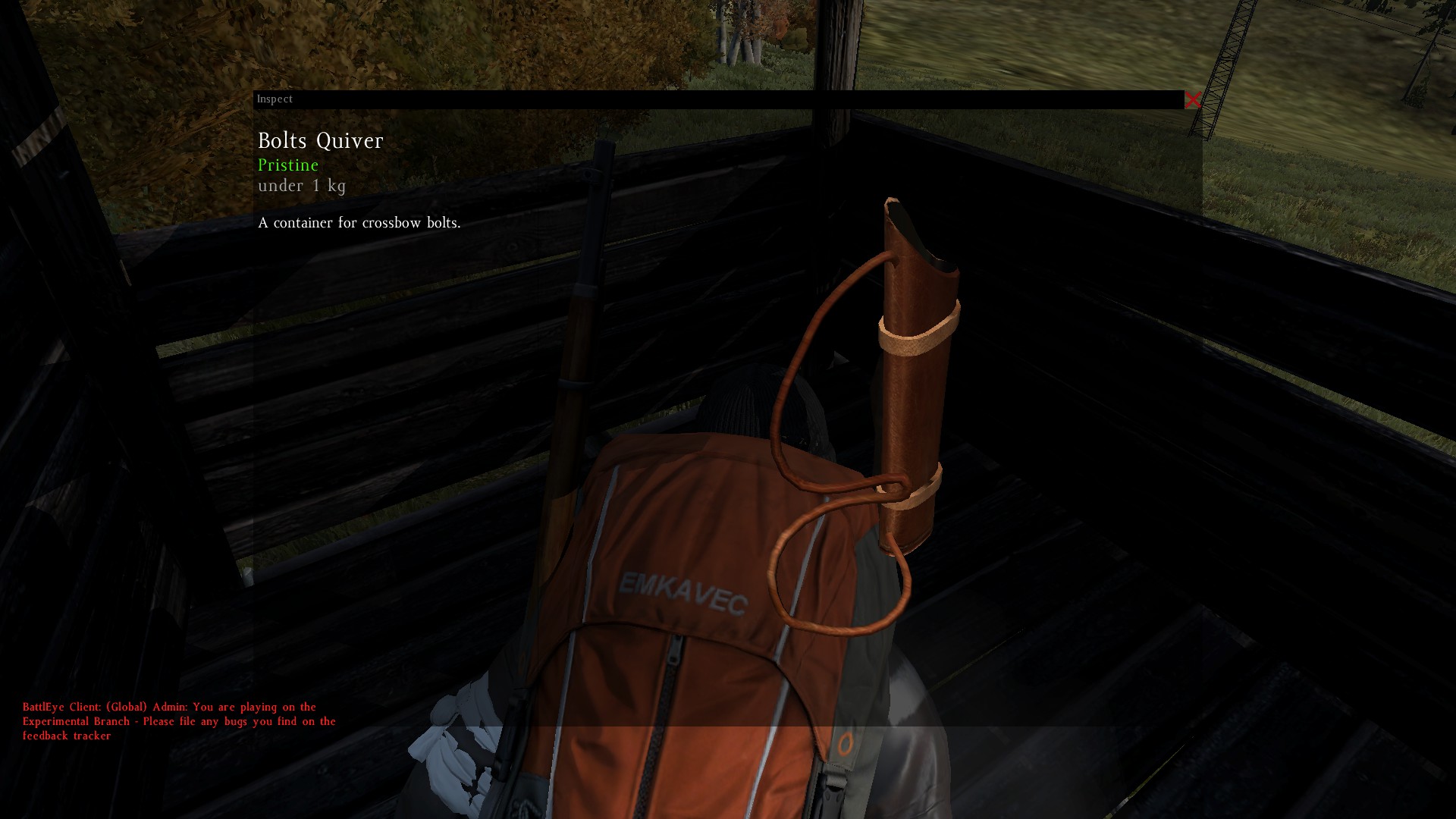 Have never seen bolt quivers before. Today I found 2 in the same hunting stand... These seem to be magazines of sorts for the crossbow. Which is strange when you can pile bolts in stacks of 5 in one slot, and these take up 2 slots and can only take 5 bolts... Where's the advantage to using a quiver? Shouldn't it be a kind of a holster for bolts, which you can equip over your clothes? Even if it were so, something more like 10 bolts would make more sense...