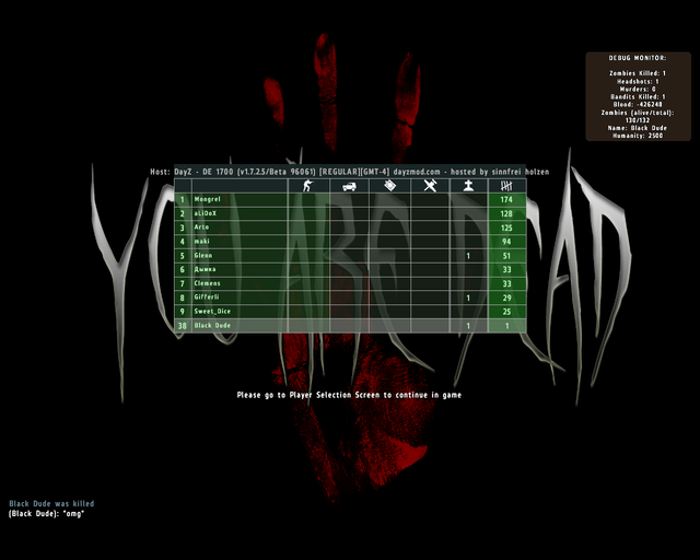 *What happened during the incident: So, me and two of my friends were playing DayZ in another server and decided to change servers since the one we were playing on was too laggy. I jump on another server and my pc crashed. As I was rebooting my pc, my two other friends were getting in the server and waiting for me. I enter teamspeak and they say to me: "There's a guy in a red car! He's looking at us!", so I tell them to wait for me. One of my friends gets shot and killed and the other one prones, waiting for me to log in the server. I get in and I see the guy shooting, so I kill him. I got a bandit kill, but when I get near the area where I killed the guy, I hear the flies but no body was there, so he probably Alt+F4'd.